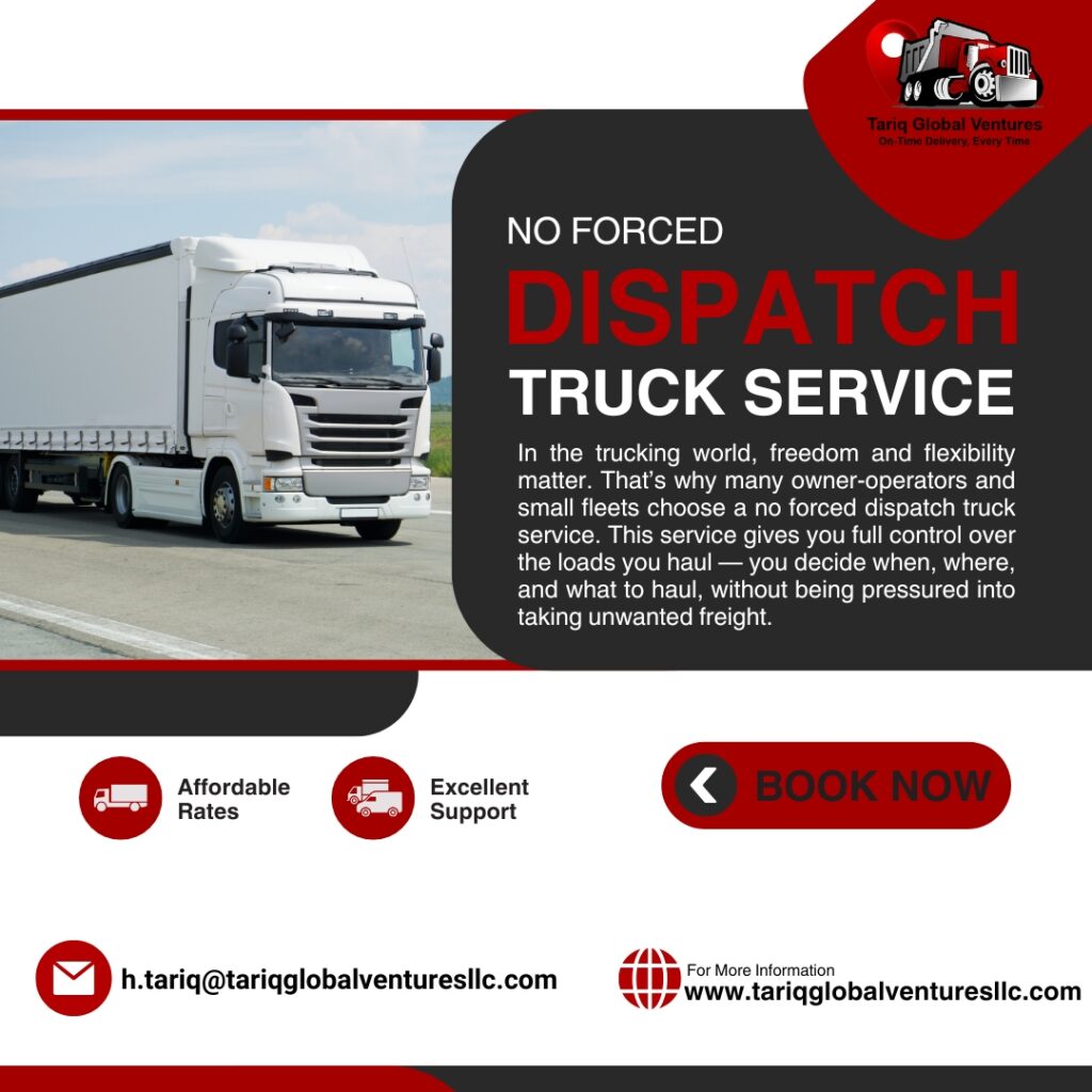 04 Oct Blog No Forced Dispatch Truck Service October 7, 2025 By Tariq Global Ventures 0 comments No Forced Dispatch Truck Service In the trucking world, freedom and flexibility matter. That’s why many owner-operators and small fleet...Continue reading