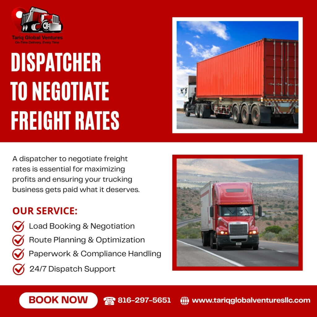 09 Oct Blog Dispatcher to Negotiate Freight Rates October 9, 2025 By Tariq Global Ventures 0 comments Dispatcher to Negotiate Freight Rates A dispatcher to negotiate freight rates is essential for maximizing profits and ens...Continue reading